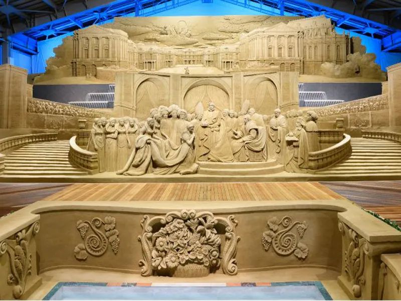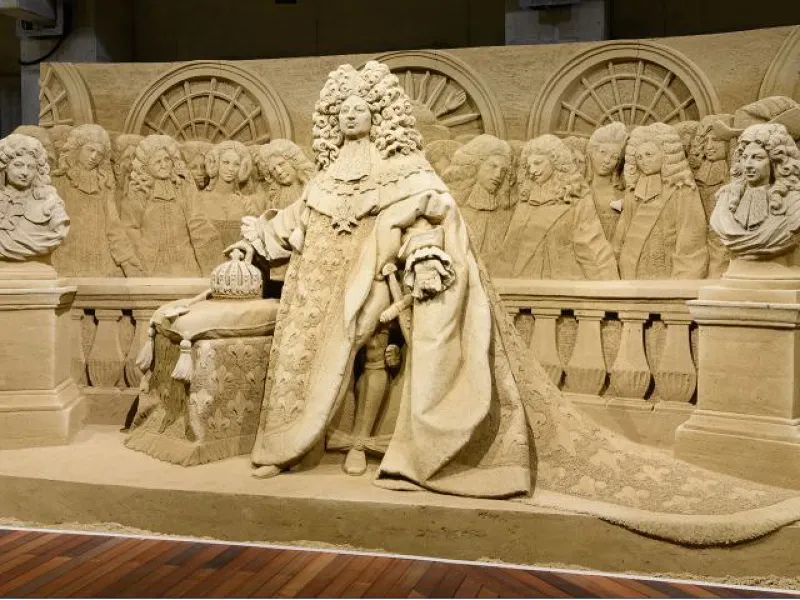 ヴェルサイユ宮殿、ノートルダム大聖堂、皇帝ナポレオンなど、フランスの伝統と革命の歴史を砂像で表現します。