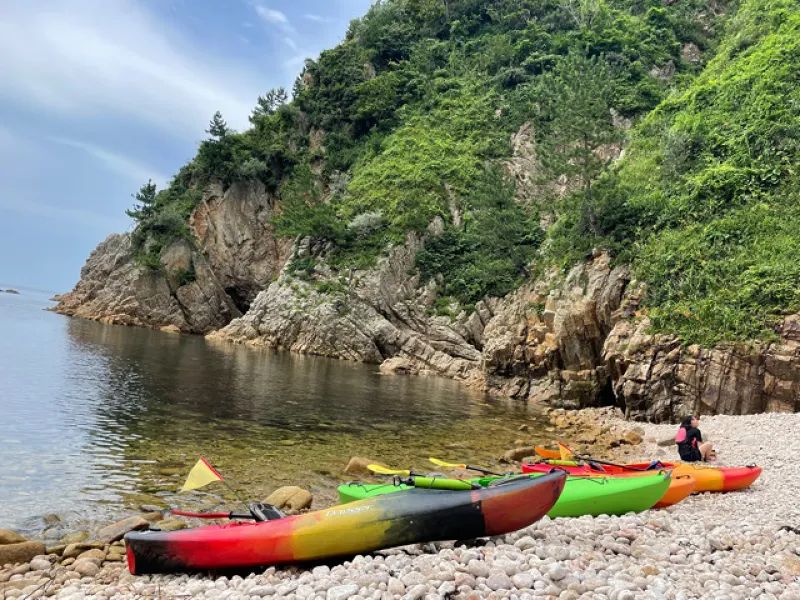 渚交流館で受付、着替えをして出発地点へ移動します(お客様のお車で10分)専用駐車場に車を止めて