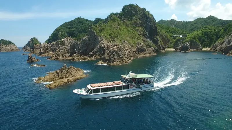●浦富海岸島めぐり遊覧船は、天候などにより欠航の場合は船長さんのガイドでバスにて海岸線をご案内します。