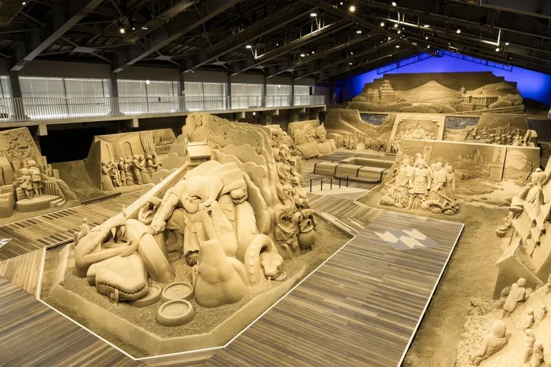 各地より<9:00~10:30発>→●浦富海岸島めぐり遊覧船(水深25mの透明度、リアス式海岸など変化にとんだ景観を眺望)→●砂の美術館(砂像を展示する世界初の美術館を鑑賞)→●砂丘会館【昼食:「桶盛り刺身と幻の海老モサエビ釜飯」<追加1,000円で「桶盛り刺身と鳥取和牛しゃぶしゃぶ(100g)」に変更可能>】・鳥取砂丘(各自で見学)→●かろいち&わったいな・かにっこ館→●白兎神社(縁結びスポットとしても人気の神社を地元ガイドと参拝)→各地へ<16:40~18:10頃着予定>