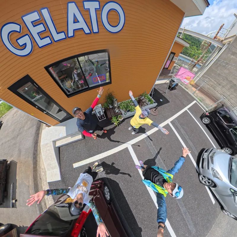 用瀬水辺公園前のジェラートショップ「ジェラテリア マンマミーヤ」さんが中間点近くの正式エイドです。