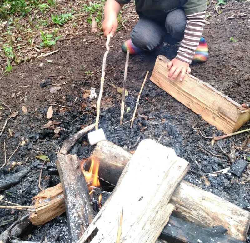 パン屋さんで野外活動の講師「せっけん」さんが薪割りや焚火・外遊びを教えてくれます♪